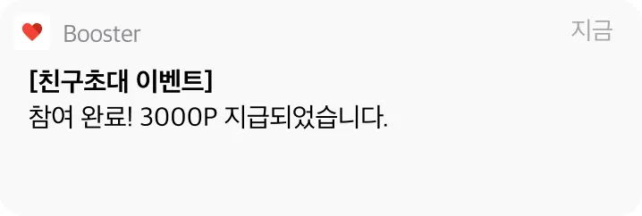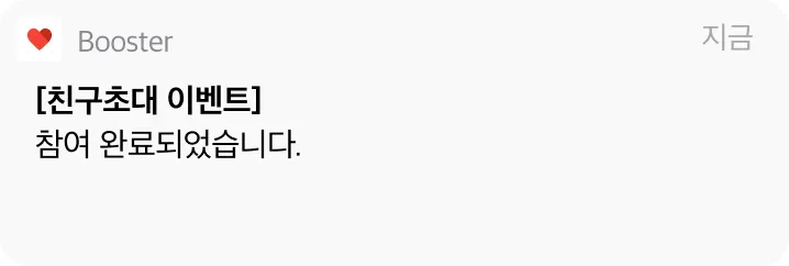 4. 피추천인이 초대코드 입력을 완료할 경우, 추천인에게 참여 완료 푸시가 전송됩니다.
