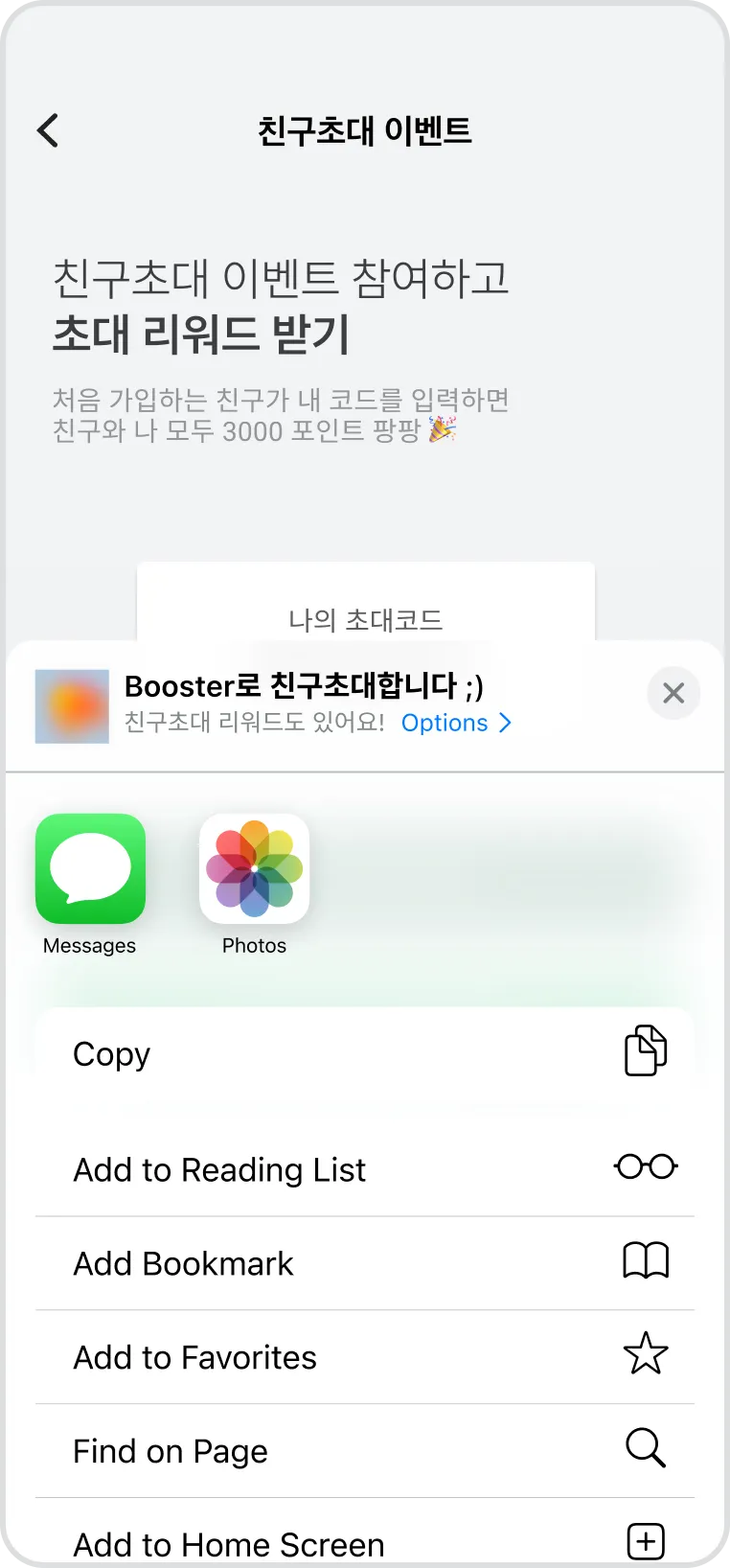 2) 초대 링크 공유하기 버튼을 클릭하면 시스템 공유창이 노출됩니다.