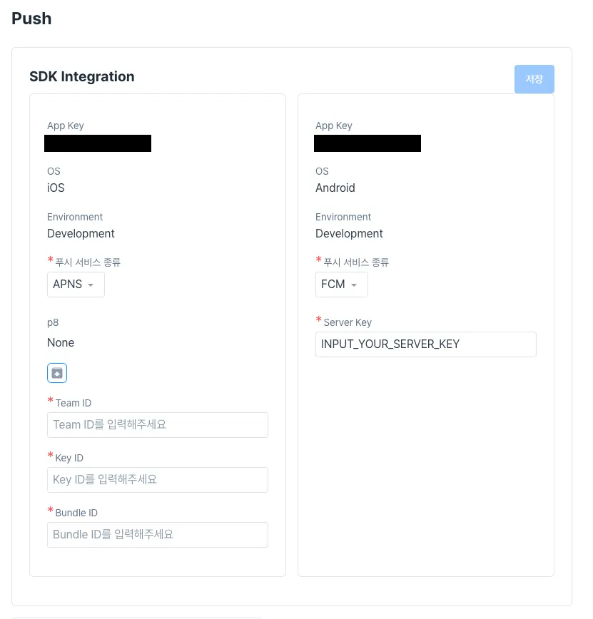 사용하는 Push Service에 따라 다음의 절차를 수행하세요