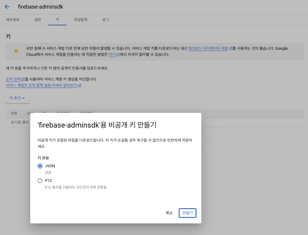 5. JSON 형식으로 만들기를 눌러, 파일을 다운로드 받아주세요.