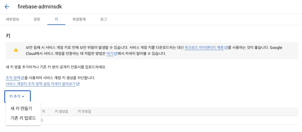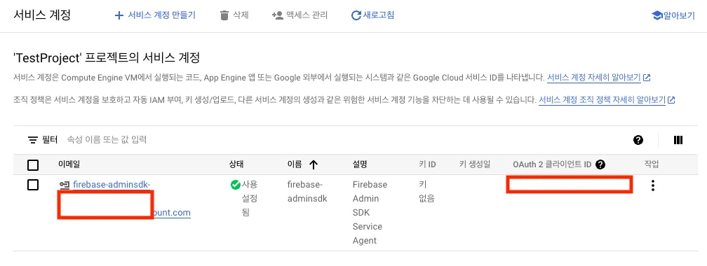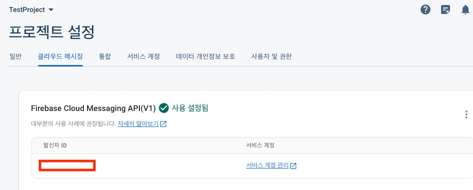 2. 클라우드 메시징으로 이동해 서비스 계정 관리를 클릭하세요.