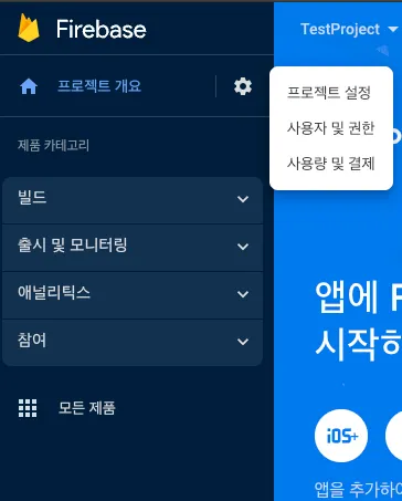 1. Firebase console의 프로젝트 설정으로 이동하세요.